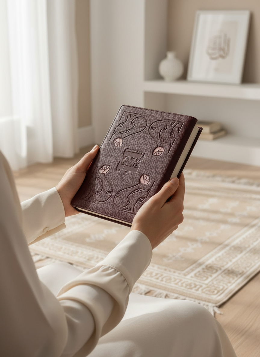 The Rabee’ Qalbi Quran Gift Set embodies a harmonious blend of spirituality and artistry, featuring a beautifully crafted leather cover made from locally sourced materials. Accompanied by a beautifully designed bookmark, this set invites you to celebrate cherished moments with a touch of elegance, perfectly suited for thoughtful gifting. You can add initials or names to make it personal and special.
