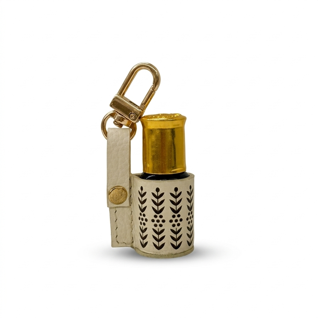 This Oud bottle charm, crafted from locally sourced leather in the UAE, offers a refined way to transport your Oud fragrance. The elegant case not only protects the scent but also enhances the luxury experience, ensuring that your essential fragrance remains accessible anytime, anywhere.