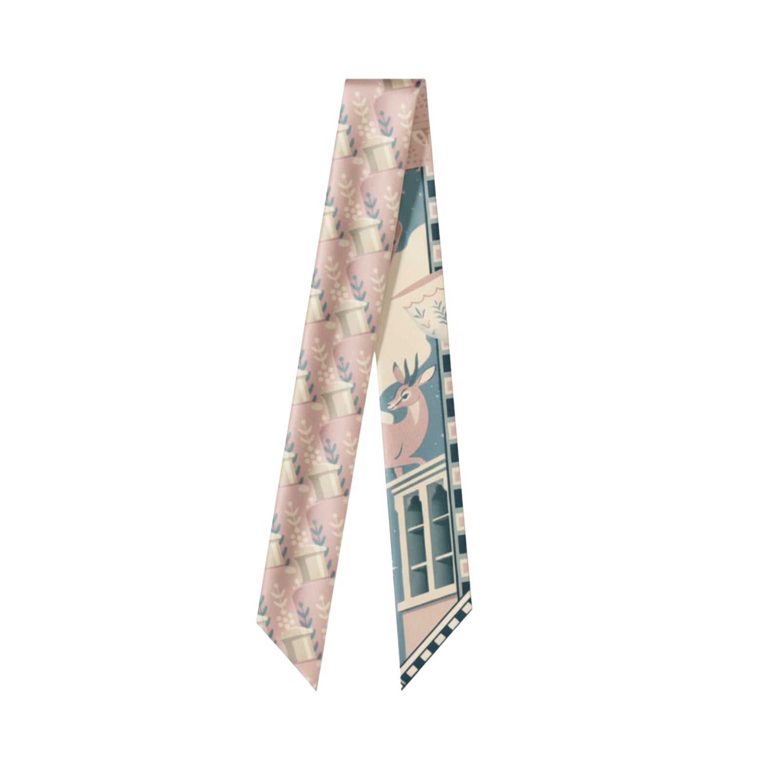 Add a touch of exceptional elegance to your look with this 100% pure silk twilly. Featuring an artistic design that blends the grace of a gazelle with the timelessness of classical architecture.
