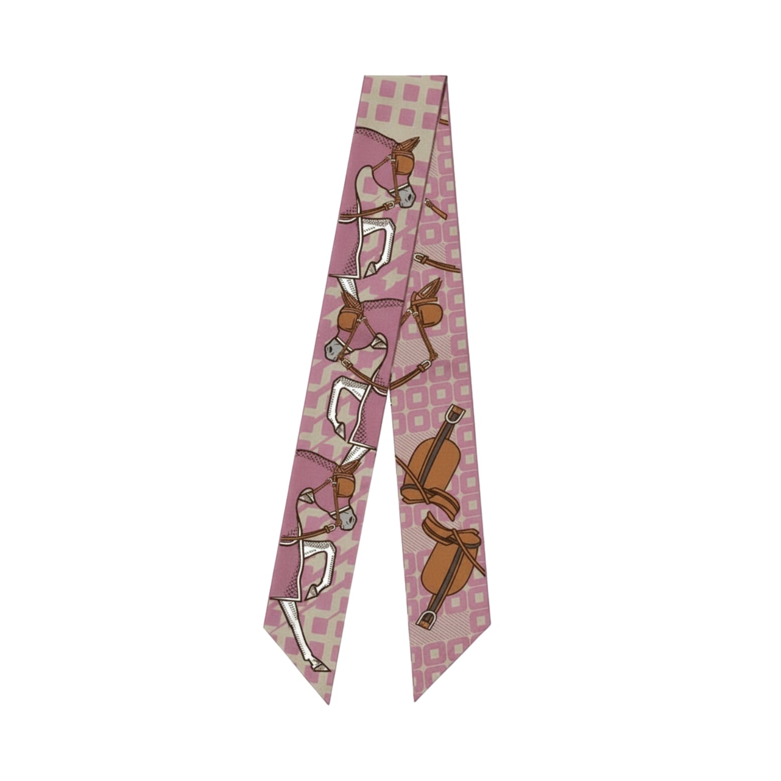 Add a touch of exceptional elegance to your look with this Luxurious silk twilly. Featuring an artistic design by Mohamed Al Tamimi that celebrates equestrian heritage through classic horse and saddle motifs, this piece adds a timeless vintage charm to your style.